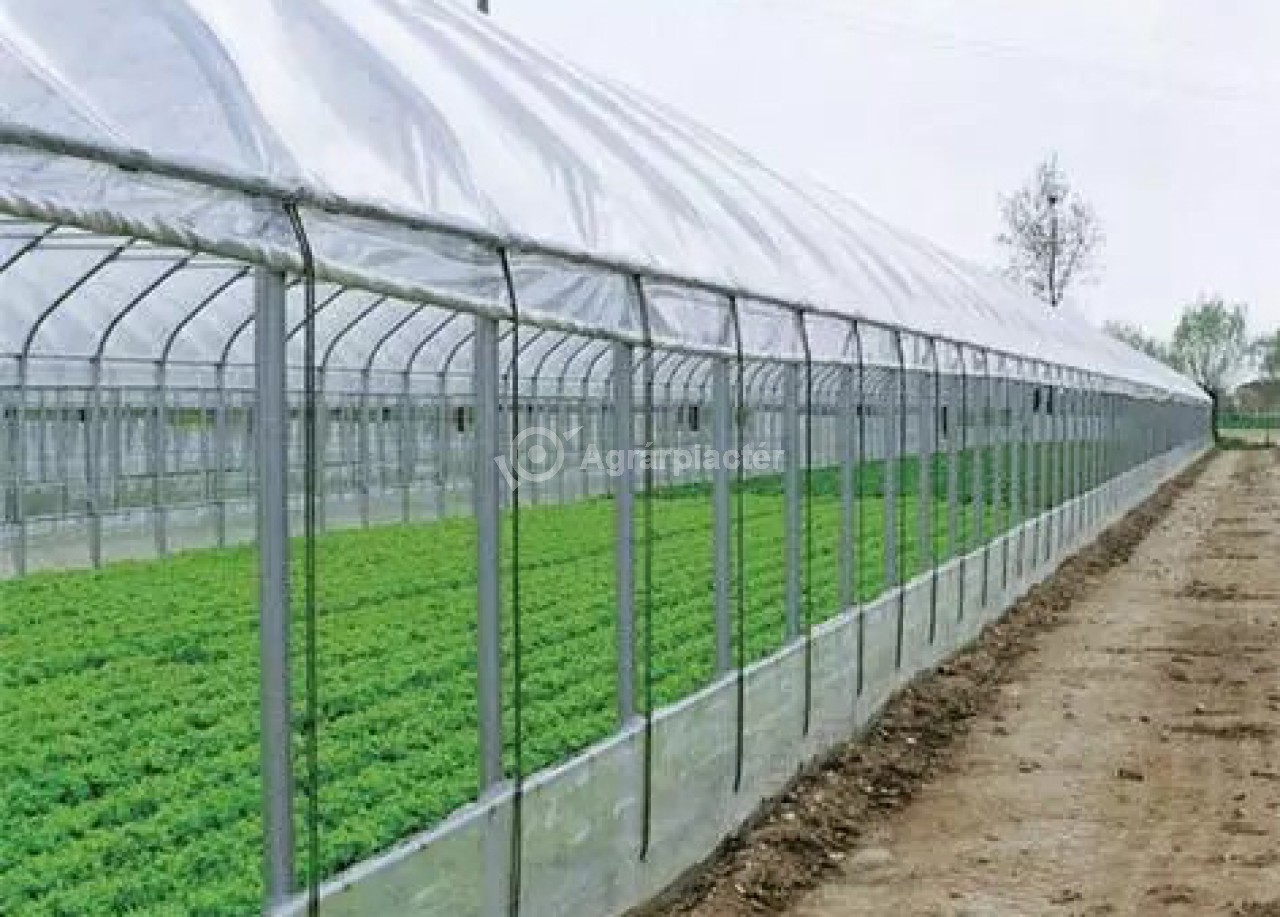 Új, gyári csomagolásban eladó egy 10x25m-es függőleges oldalú, gótikus alakú fóliaház.